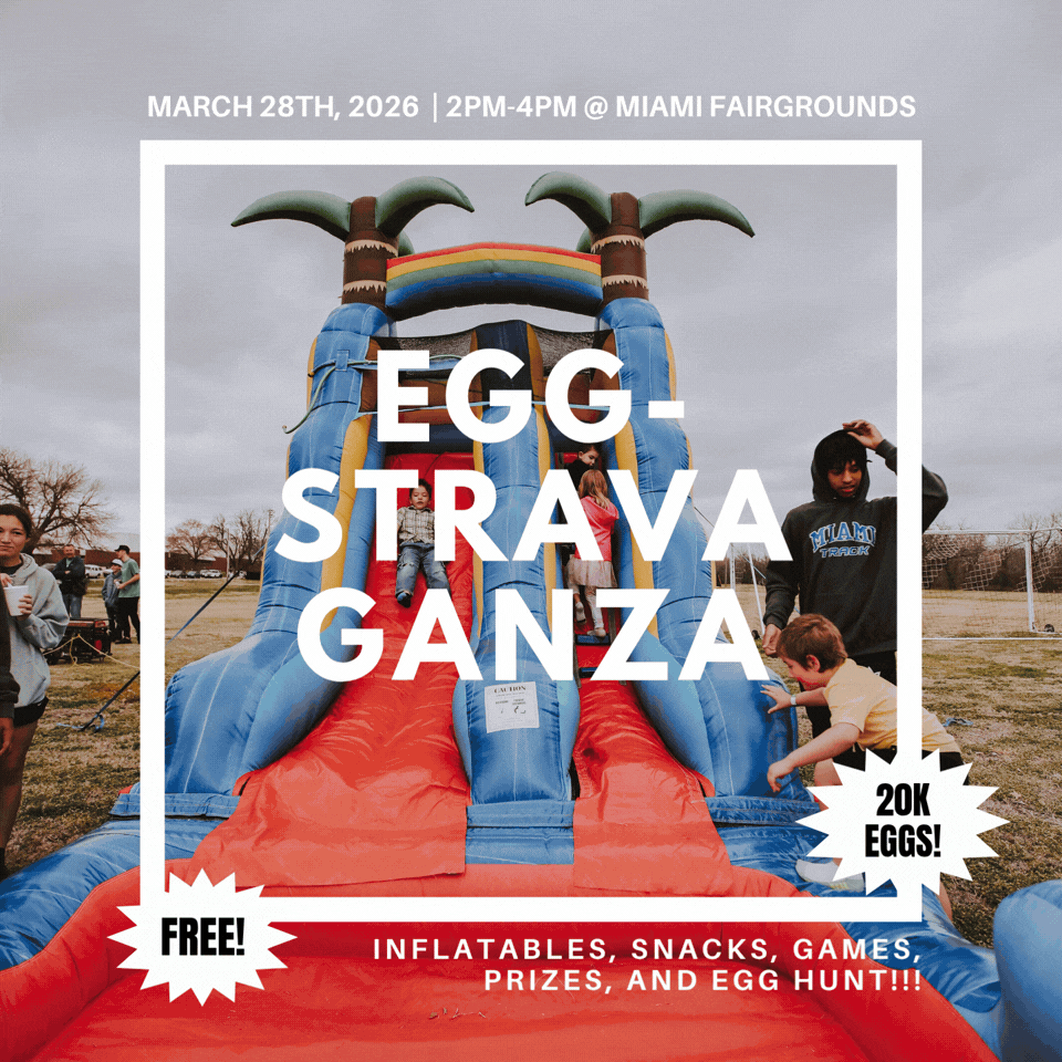 We’re going to have so much fun for Easter! At the Miami Fairgrounds from 2PM-4PM, we will have inflatables, snow cones, cotton candy, popcorn, and 20,000+ Easter Eggs! There will be TONS of giveaways! ANY and ALL are welcome. Don’t forget your Easter basket!